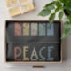 Retro style colourful peace text design with lines and dove of peace decoration on grunge background. You can add your name/monogram to personalise the item.