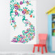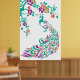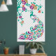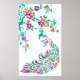 Colourful peacock and cherry blossoms custom poster print, featuring a silhouette of a peacock bird and a cherry branch -sakura tree- with lovely flowers on white background. A design with an oriental Asian flair. Colours: Teal, purple, orange, gold.