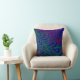 This eclectic throw pillow features a colourful maximalist abstract peacock design. A bold multi-coloured peacock feather is majestically flaunted in bright blue and green against a complimentary abstract blue, purple and magenta background with complimentary paint splashes.