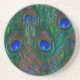 Colourful Peacock Feathers Etching Style Coaster