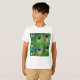 100% cotton so perfect for summer, It is a nicely designed t-shirt, the fabric is soft and the seams finished well, the body of the t shirt has no side seams. I bought a medium size for my two grandsons, aged 9 and 8 it will be slightly big on them but I would rather that than too small
