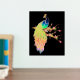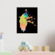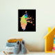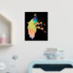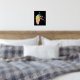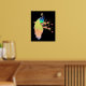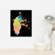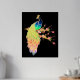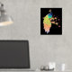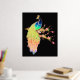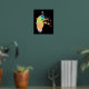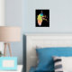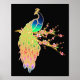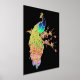 Gold foil print, with a colourful peacock sitting on a cherry blossom tree branch, against a black background. Stunning print that goes well in any room.