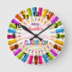 Trendy Elegant Classroom Clock. Designs features colourful pencils in a circle and fun colourful classroom script. Perfect gift for teachers. Template can be modified. Click Customise option to change text colours, size, and font styles.