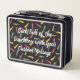 This is a standard metal lunchbox that appears to work just fine. We designed this box ourselves with an uploaded photo and custom text on the front and back. It looks absolutely beautiful except the front of the lunchbox is not centered like it shows in the photo. The print borders don't align with the inset flat part of the box where the preview photo online showed it perfectly centered in there. The back looks nice and centered though.