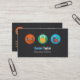A modern, contemporary, colourful and stylish business card with familiar fitness icons. They include dumbbell weights, kettebell weights, water bottle and apple to symbolise hydration, diet and nutrition. A dark black background with rugged texture that brings out the colours. Great for freelance personal gym trainers, fitness instructors and anyone in the health and fitness industry. Personalise easily with your business details.