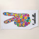 With this groovy design you can spread a little peace as you work on your tan or dry off from a dip in the pool, lake, pond, or ocean. The design features features a hand making the peace sign while filled up with many colourful peace symbols. Personalise with the name of your choice which will appear near the bottom of the design in a black, cursive font.