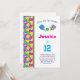 Green, pink, yellow and purple Pickleball birthday party invitation. Fully customisable. Two crossed colourful pickleball paddles and green pickleball. With RSVP card at the back