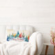 "Merry Christmas" is written in editable seasonal red script on this winter holiday pillow. Colourful Christmas trees cover a snowy hillside in a lovely vintage-inspired watercolor painting. This is a very nice gift idea. Be sure to edit the example family name and year.