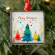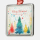 Colourful Pine Trees Merry Christmas Metal Ornament