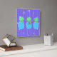 Colourful Pineapple Clock on a blue striped background. The pineapples are green and turquoise, and the numbers are white. Thanks to the Hungryjpeg and Creative Fabrica for some of the elements in the design.