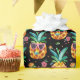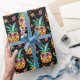modern watercolors illustration colourful pineapple in sunglasses with leafs and flowers in a seamless pattern.