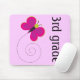 Colourful school mousepad has 3rd Grade Teacher slogan and bright pink butterfly logo. Perfect to brighten up your favourite Third Grade teacher's desk.