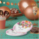 This tropical wedding design is perfect for couples who are planning a summer, beach or tropical destination wedding. Plates feature a beautiful and vibrant watercolor design with tropical flowers in shades of pink and orange, reminiscent of a gorgeous island paradise with faux gold glitter elements.