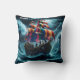 Colourful Pirate Ship Battling Stormy Seas Cushion