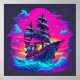 Aesthetically pleasing and colourful illustration of a pirate ship on waves, would look awesome on a wall!