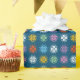 A classic winter motif of the knit fair isle sweater gets a modern twist with this pixelated snowflake pattern in bright candy pink, juicy orange, mint green, sky blue and lilac purple on cool navy blue. Wrap your holiday gifts in a warm and cheery wrapping paper to bring those Christmas holiday vibes to friends and family. If you're looking for a custom colour combination, you can easily change the background colour to one of your choice with the blue "edit design" button.