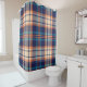 Colourful plaid pattern in blue, orange, beige. He Shower Curtain
