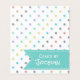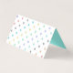 Whimsical bakery folded business card done in white with colourful pastel polka dot pattern and a aqua ribbon text area, on the front. The inside is done in a solid aqua with fun graphics of a white chalk drawing look of a wedding cake. Personalise the text to suit your business needs.