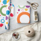 Fun wrapping paper featuring a colourful pattern of circles and polka dots. This funky wrapping paper is perfect for birthday gifts and other special occasions.