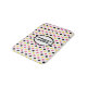 Whimsical colourful bath mat, done in a pink, yellow, and black, on white, polka dot pattern. A black scalloped framed oval text area, in the middle, has a large black one letter monogram ready to personalise. Comes in three sizes.