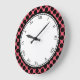 Get playful with this colourful and fancy wall clock! Most of the clock face is white, making the black Roman digits easy to read. The outer parts is where the colourful fun begins! Tiny black polka dots cover the entire border, and you can replace the coral red background with any colour of your choice by customising this product!
