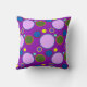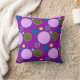 Circles, spots and whimsical polka dots adorn this throw pillow. Bright coloured circles set on a purple background will add colour and fun to any home decor.