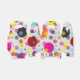 Multi Coloured, Colourful Overlaying Polka Dots with a white background design.