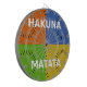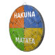 White: The text "HAKUNA MATATA" is rendered in white, providing strong contrast against the colourful backgrounds and ensuring the message stands out prominently.