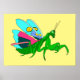 Illustrated Praying mantis. Colourful wings and a bright green body. She's got attitude.