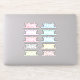 Colourful shaped, clear (or white) stickers with text only. Use for return address or business advertising. Add your own text, up to four lines, with a business name, contact, website, etc. and use as envelope seals, on giveaways, products, or for thank you notes and gift tags. Also good for making unique return address labels. One “sticker” contains ten address stickers. Your individual stickers will be sized according to the size of the sheet: The four or six inch sheets are probably best, and the largest sheet will make the text separate. Check your text in the preview and be sure it does not get close to the edge of the sheet. Bright, various colours are used. To change the text colour, use the "customise further" area.