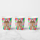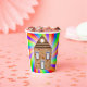 Liven up your party with these colourful paper cups showcasing a whimsical brick house on a vibrant rainbow background. Perfect for birthdays, themed events, or any celebration with a retro, artistic flair.