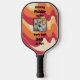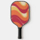 Retro styled carbon fibre pickleball paddle with groovy psychedelic waves in colourful, warm shades of red, orange, and yellow.
