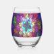 Colourful Psychedelic Flower Abstract Fractal Art Stemless Wine Glass