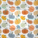 This design features a vibrant and modern pattern of pumpkins in a variety of shapes and colours. The design includes stylised pumpkins in shades of orange, yellow, beige, blue, and green, all set against a clean white background. The pumpkins are depicted with smooth, curved lines and subtle shading, giving them a sleek and contemporary look. Each pumpkin has a different stem, some with curly vines, adding a touch of whimsy to the pattern. The overall design is fresh and festive, perfect for adding a splash of autumnal colour to any project or décor.