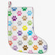 Colourful puppy paw prints on white background Christmas stocking