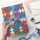 Each puzzle piece is rendered in vivid hues—think lively reds, blues, greens, and yellows, creating a dynamic and eye-catching design. This whimsical wrapping paper is ideal for birthdays, children’s parties, or any celebration where you want to bring a smile to someone’s face.