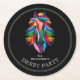 A bright colourful racehorse head and mane on a black background are featured on these derby-theme party coasters. MATCHING items in our collection.