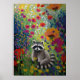Colourful Racoon in Wildflower Garden Art Animal Poster