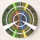 I'm not sure how much moisture these will soak up, haven't had a chance to try them out, but they look good and I like the cork backing. The printing is fine ~ and really looks cool with an artisan's hand made "Hurricane Martini" glass sitting on top of my painting (on the coaster) in my studio.