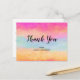 Thank you postcard with an image of a painted abstract design. Yellow blue and pink stripes. Bold and vibrant background pattern.