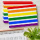 Colourful rainbow and white stripes design. Colourful rainbow stripes leave a bright, friendly casual impression. Templates for name and address on the back. As shown on the standard white background. Stripes and background colours are fully customisable.