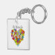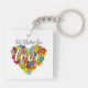 Colourful Rainbow Flag Colours Foral Heart Pattern Key Ring