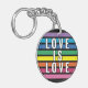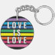 Cute colourful keychain with simple minimalist stripes pattern design in lgbt pride rainbow colours.