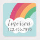 A whimsical kids iron label featuring an arching vibrant rainbow with white fluffy cloud and calligraphy Name and child's phone number beneath. Add this to variety of back to school items for easy labelling with personality and flair. Great for both hard and soft items like lunch boxes, water bottles, book bags, blankets, uniforms, shirts, jackets, towels and other personal items. Look for coordinating accessories and additional colour variations by Stacey Meacham.