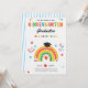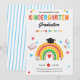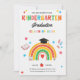 Celebrate your little graduate's big milestone with this vibrant and whimsical rainbow-themed kindergarten graduation invitation. Featuring a playful hand-drawn rainbow, a classic graduation cap, and a colourful pencil illustration, this design perfectly captures the joy of completing their first year of school. The clean, modern layout includes clear sections for the event date, time, location, and RSVP details, making it easy for parents to personalise for the Class of 2028. Ideal for school ceremonies, classroom parties, or private family celebrations.