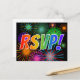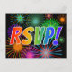 Colourful Rainbow Letters "RSVP!", Firework Patter Postcard