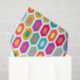 A modern geometric pattern in a rainbow of colours - pink, purple, yellow, green and blue. You can change the size of the pattern by clicking on Customise It. Click on the image, then use the plus and minus buttons to adjust the size.