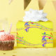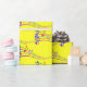 Rainbow music notes and treble clef symbol on a bold yellow background.