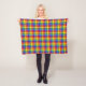 Fleece blanket with a colourful chequered plaid pattern in the colours of the rainbow. A Plaidwerx original pattern.