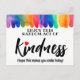 Brighten someone's day with this Colourful rainbow Random Act of Kindness Postcard! Featuring a vibrant design, this uplifting card is perfect for sharing encouragement, gratitude, or a simple act of kindness. Whether left for a stranger, given to a friend, or used for an anonymous good deed, this postcard is a beautiful way to spread positivity and joy.